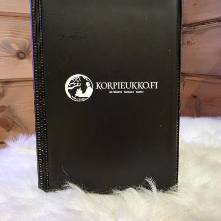 Muovipäälysteinen maastokorinsuoja, koko avattuna L240 x K170 mm, kannessa paikka kynälle.